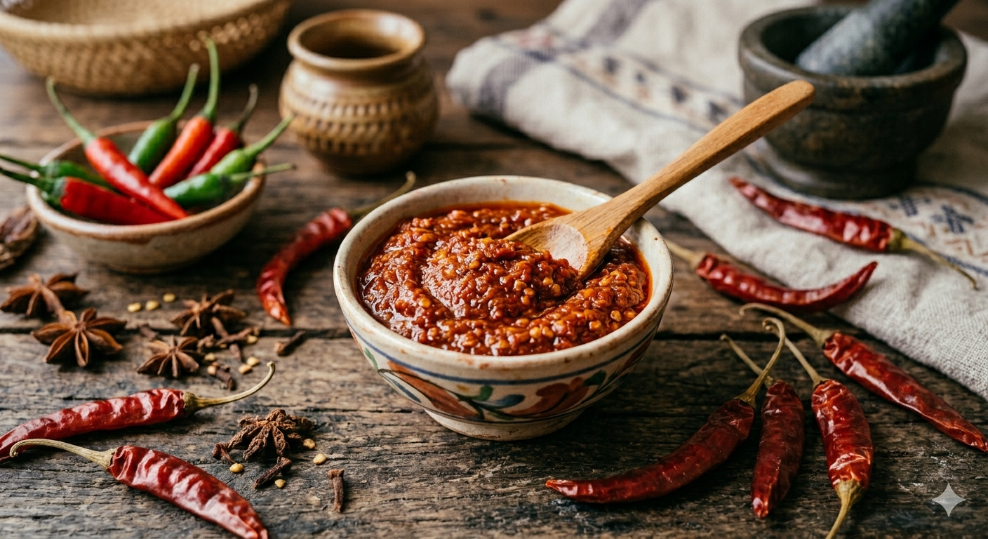 Le Sakay est bien plus qu un simple condiment a Madagascar : c est un symbole de convivialite et de partage. Presente sur toutes les tables malgaches depuis des siecles, il accompagne le riz quotidien et marque les grandes occasions. Son nom vient du mot malgache "saka" qui signifie "ecraser", en reference a sa preparation au mortier.